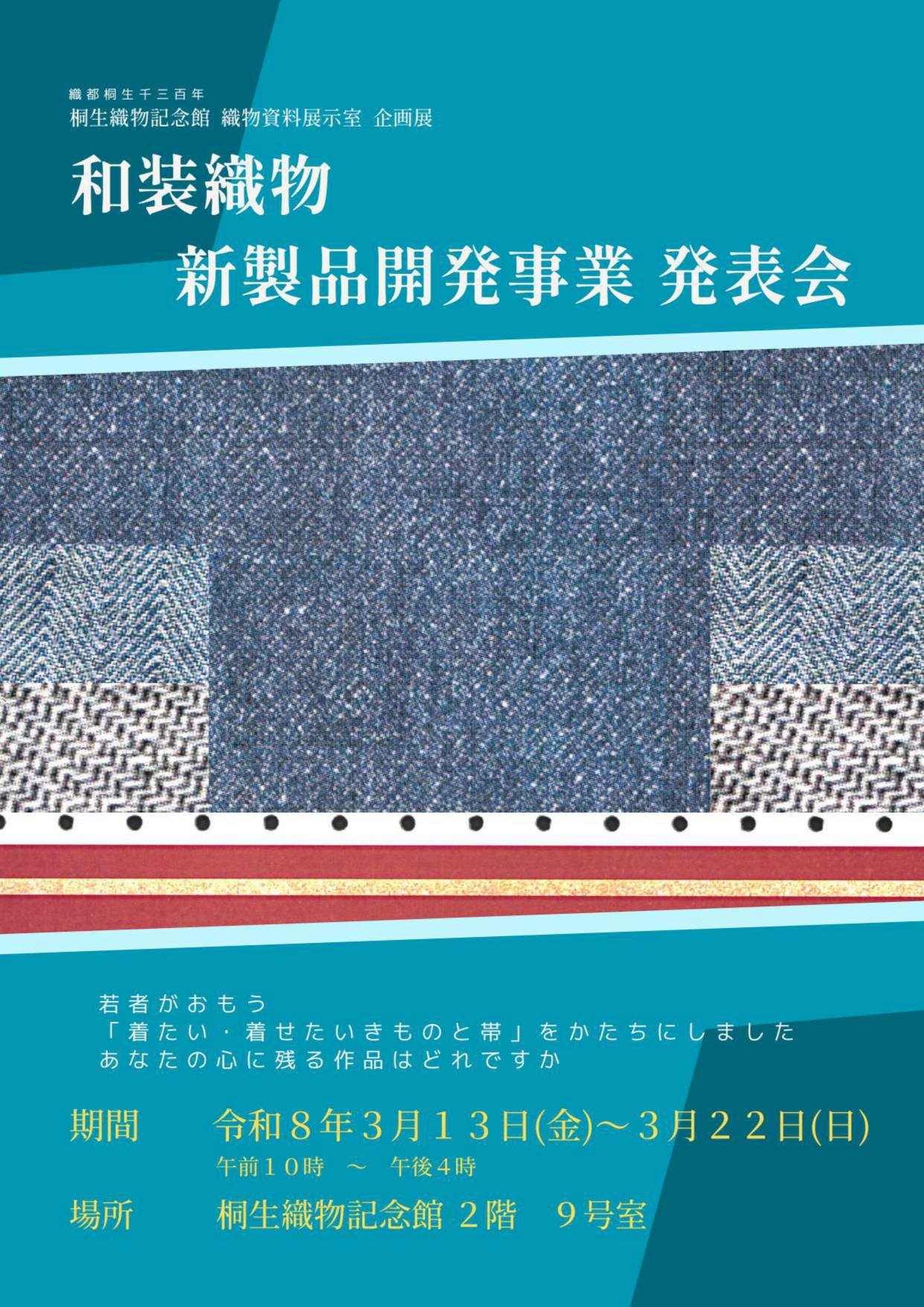 3月13日(金)~ 22日(日)和装織物新製品開発事業 テーマ「着たい・着せたいきものと帯」の発表会を開催します!