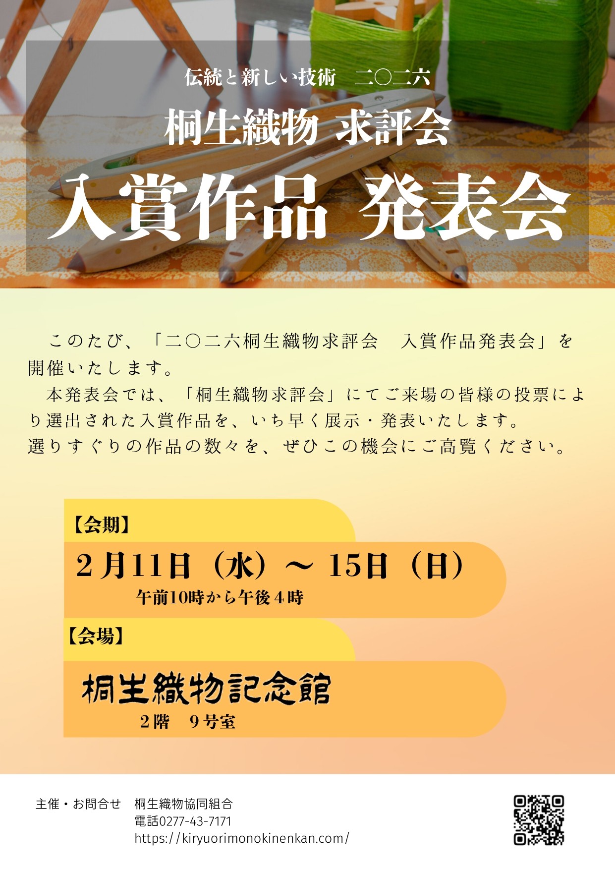 2月11日(水)~ 15日(日)桐生織物 求評会 入賞作品 発表会を開催します!