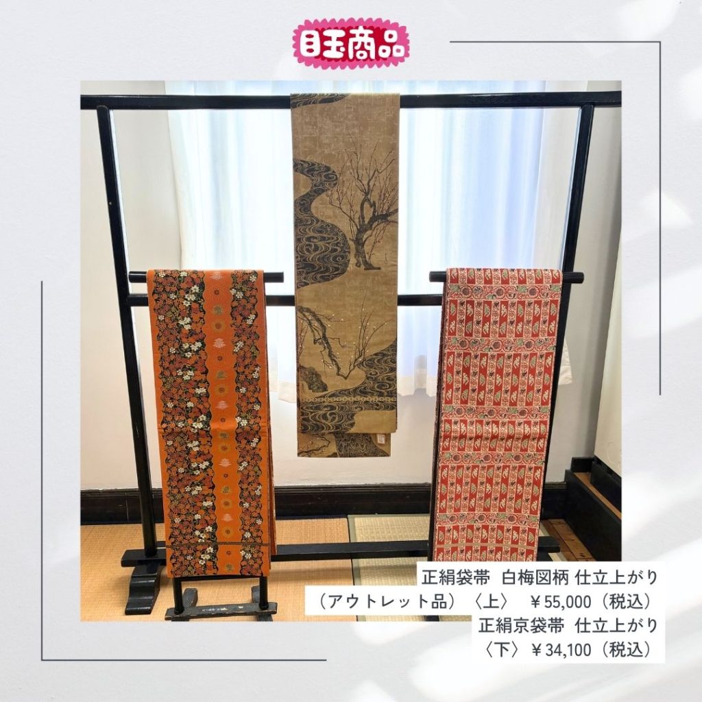 伝統工芸士の卓越した技術によって生み出された、新年にふさわしい華やかな絵画織商品などを企画展限定で展示販売!