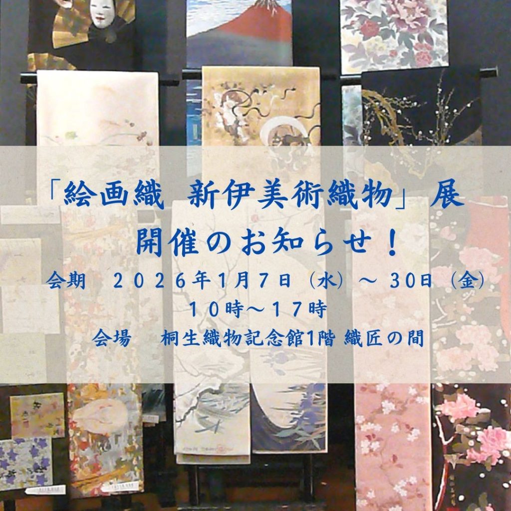 1/7(水)から 30(金)まで桐生織物記念館1階織匠の間にて、「絵画織 新伊美術織物」展を開催します!